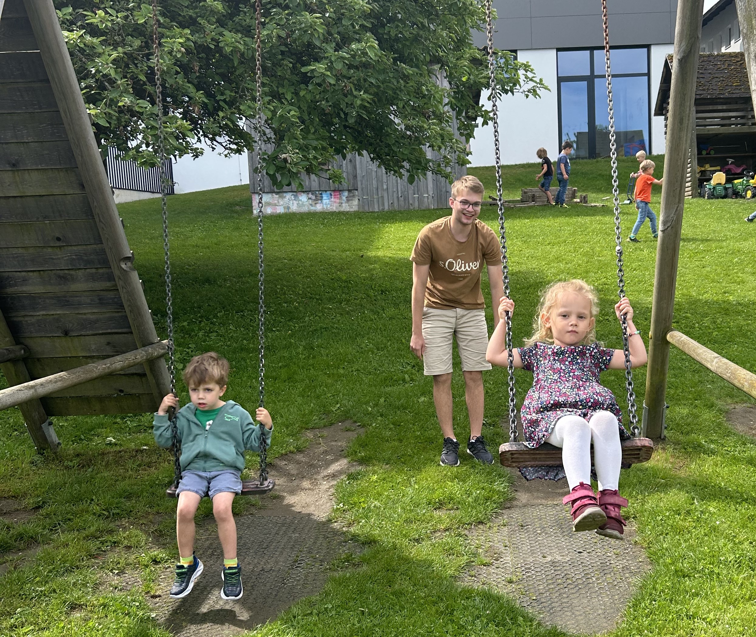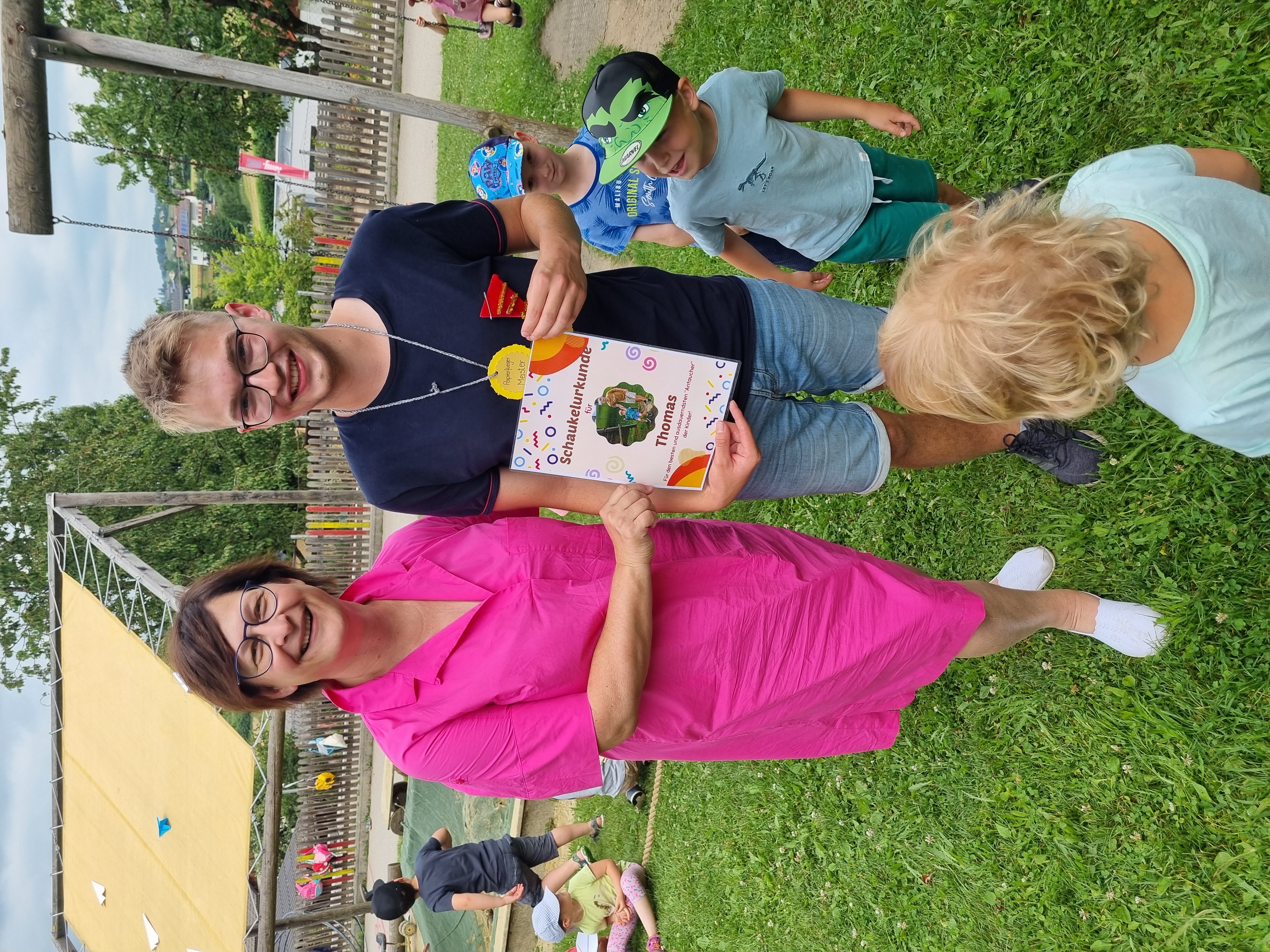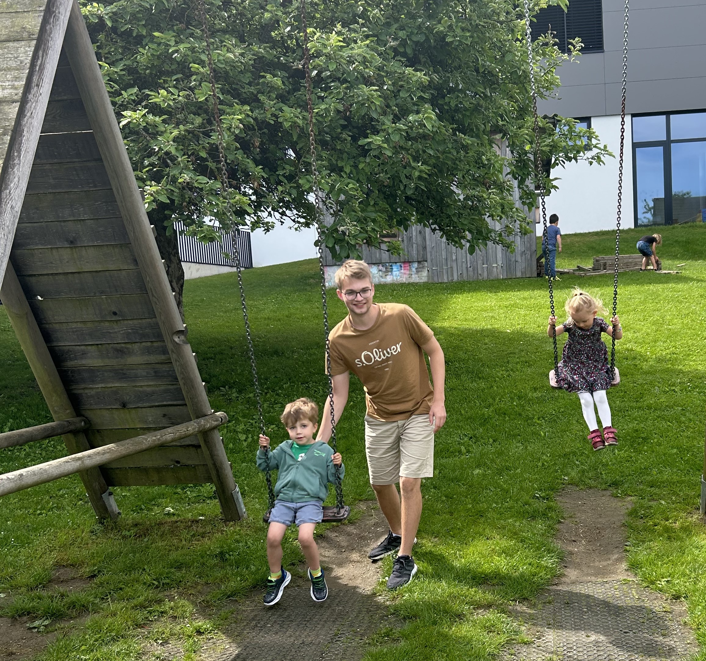 Thomas hat seinen Zivildienst bei uns mit Juni beendet. Er war für uns eine große Unterstützung in den Gruppen und oft „Mann für Alles.“ Viel Zeit verbrachte er, um mit den Kindern Bauwerke zu konstruieren, zu zeichnen und im Garten herumzutoben. Thomas war unser „Schaukelmeister“. Oft stand er bei der Schaukel, um den Kindern „anzuschubsen“. Sein großes Engagement und seine unendliche Geduld fehlen uns sehr. Wir wünschen Thomas für seinen weiteren beruflichen Werdegang alles Gute.