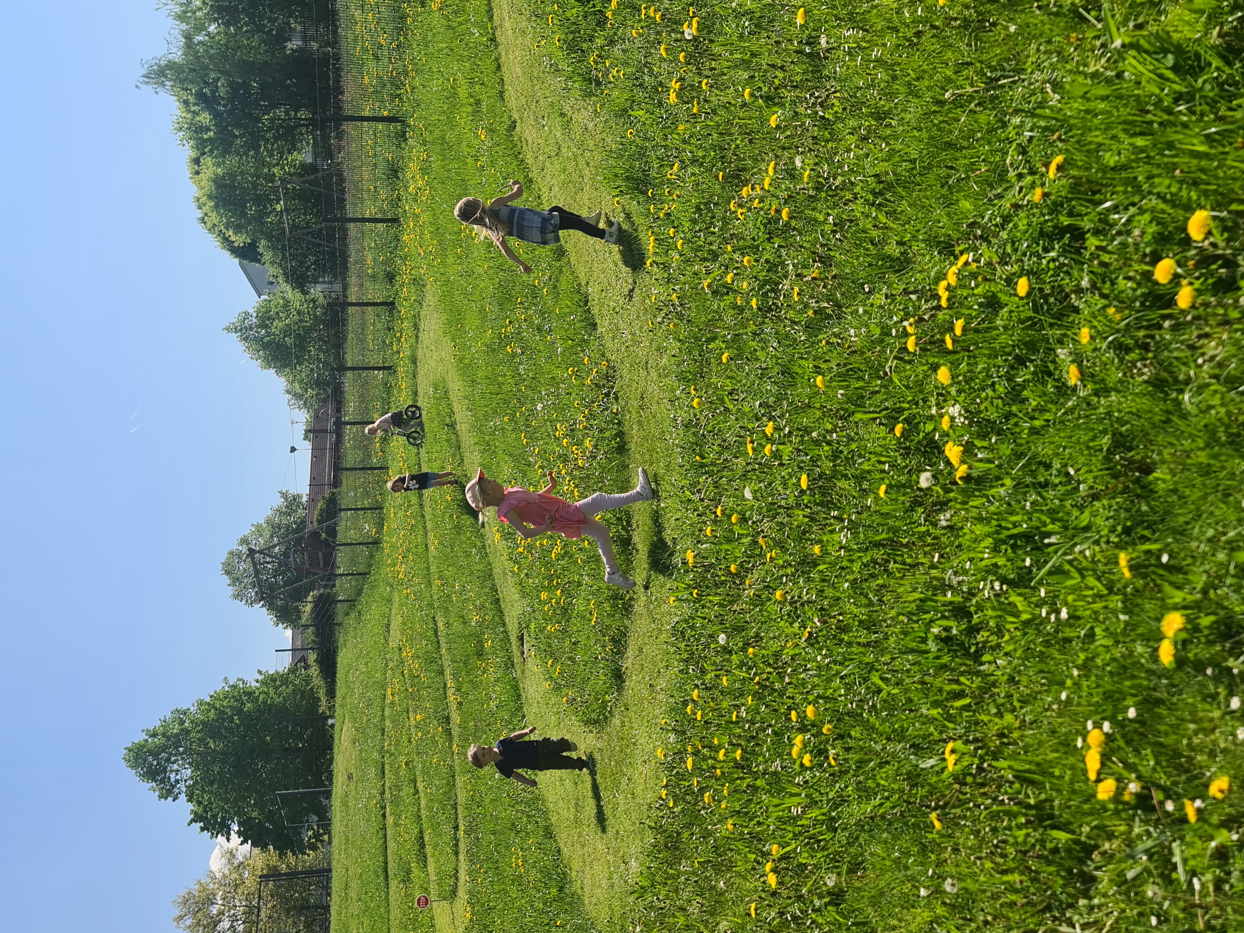 Unsere Gemeindearbeiter haben eine „Schnecken- und Schlangenform“ in die Wiese gemäht. Das regte die Kinder zum sofortigem Ausprobieren an. Sie haben Spaß daran den Verlauf des Weges zu folgen, zu laufen oder mit einem Fahrzeug zu fahren. Diese neue tolle Idee sorgt für Begeisterung und Abwechslung und animiert die Kinder sich im Freien zu bewegen.