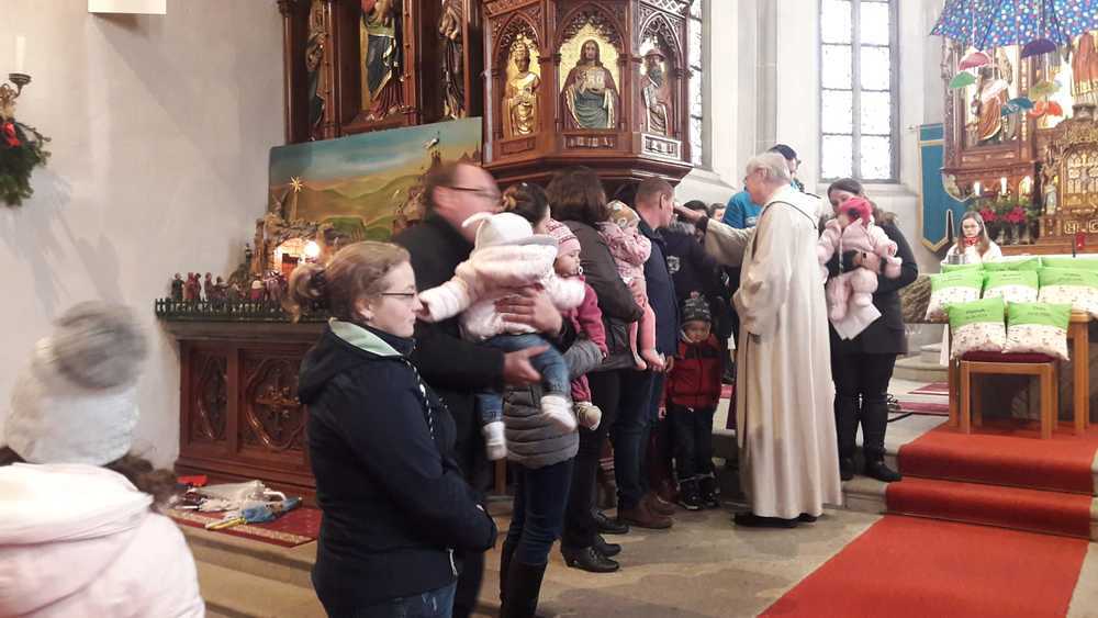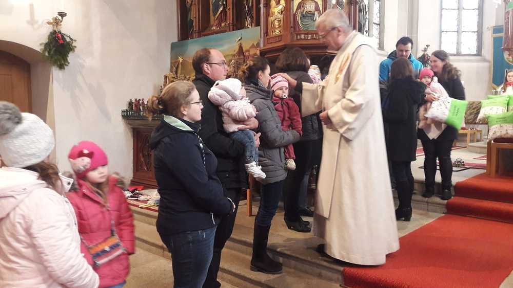 Als Geschenk der Pfarre bekamen die Eltern diesmal wunderschöne Pölster für ihre Täuflinge.
